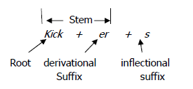 which we call a ROOT. Add back on the derivational suffix –er and you get kicker,