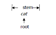 a stem consist of one or more roots, plus zero or more derivational affixes. A