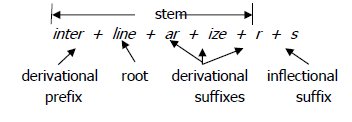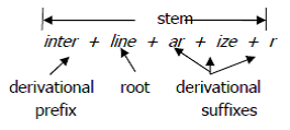 stem may contain more than one derivational affix, as in interlinearizer (a type of computer program that is used by