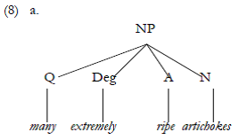 ü That is, do Deg and A together form an ADJECTIVE PHRASE (AP), as in (8b)? Or are they individually constituents of the NP, as in (8a)?