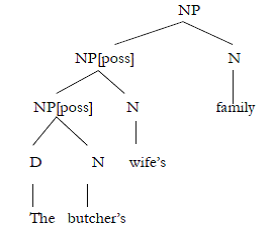 [NP[NP[NP the butcher’s] wife’s] family]