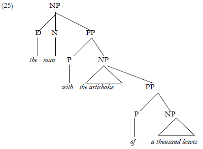 [NP[NP the artichoke’s] three shriveled leaves]