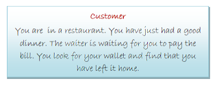 Teacher : 1. tells Students that they are in the restaurant.
