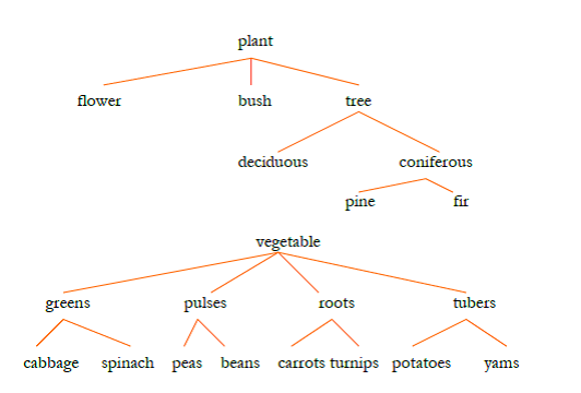 Often these hierarchical diagrams are called ‘taxonomies’. With each downward step we encounter terms of more specific meaning.