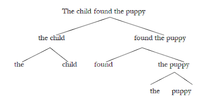 May be grouped into (the child) and (found the puppy), corresponding to the subject and predicate of the sentence. It is easier to see the parts and subparts of the sentence in a tree diagram: