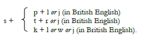 If there are only two consonants in the cluster, the first must come from set /p,t,k,b,g,f,v,θ,s,∫,h/ in the following patterns. The normal orthography is used but the reader is reminded that sounds and not spellings are referred to: